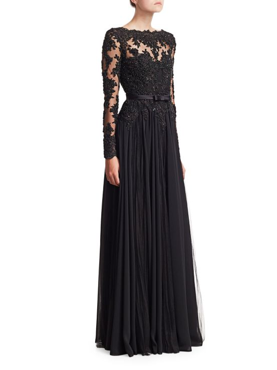 - Beaded bodice and sleeves