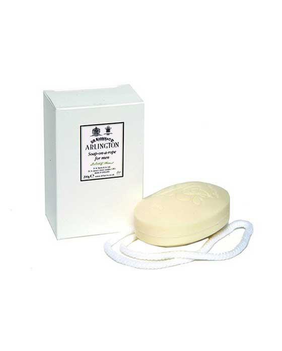 The D.R. Harris Arlington Soap On A Rope provides a luxurious experience with its succulent scent and nourishing ingredients. Includes almond oil so that skin doesn't experience the typical dryness that occurs from using traditional bar soaps. Triple-milled so that there is a longer lasting lather to allow skin to soak up the bar's nourishing ingredients inside out. Includes a rope so that it can be hung for easy access.